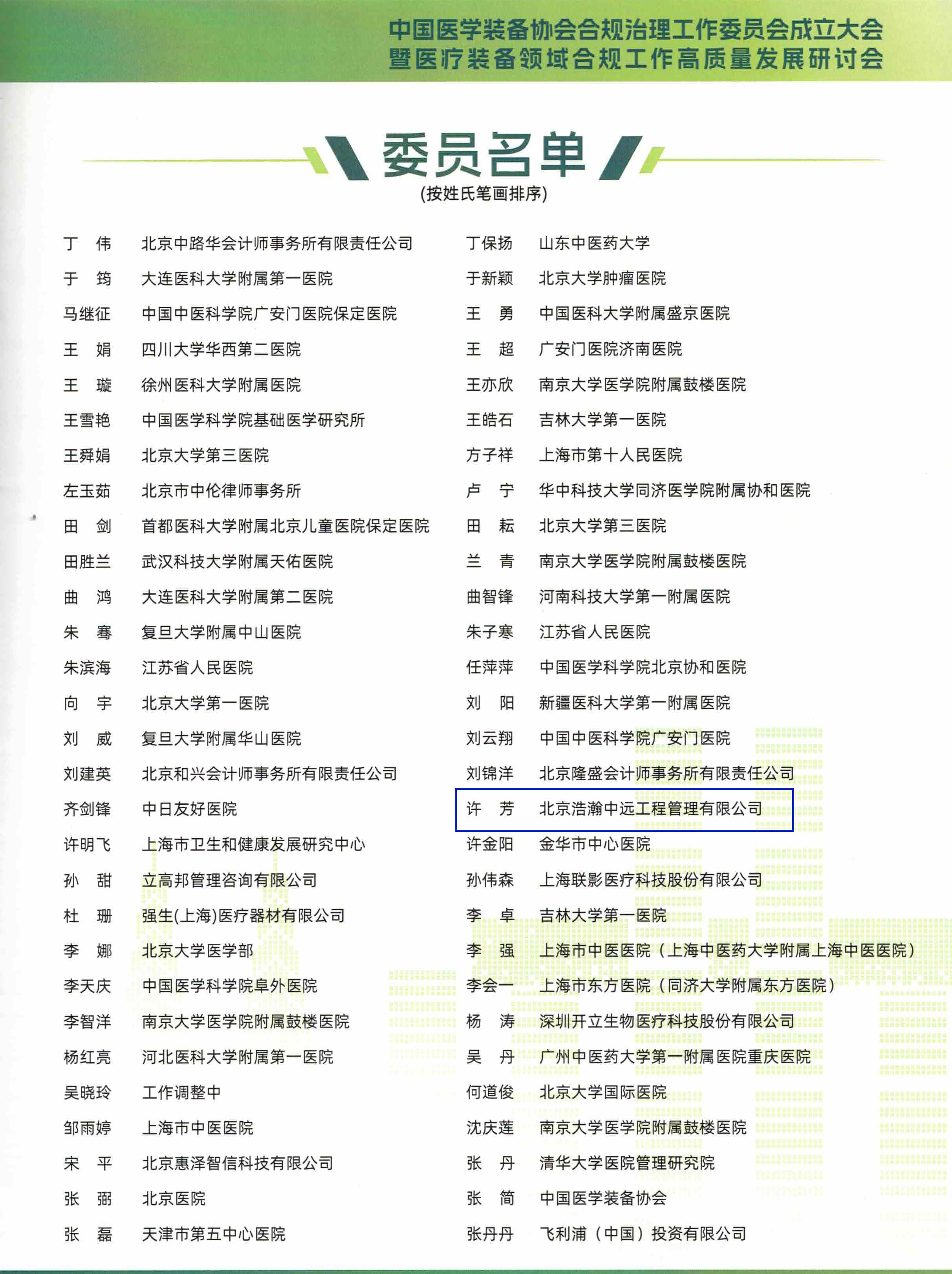 北京浩瀚中远工程管理公司作为协会第一届委员及受邀嘉宾单位,由董事长谢春蕾女士带队亲自参加出席此活动。委员会的成立为推动医学装备行业合规治理和行业自律,加强行业合规管理体系建设,防范违规风险,促进行业相关机构高质量发展。