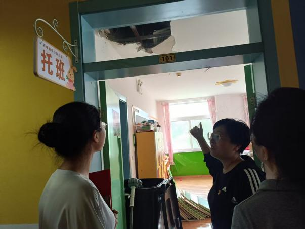 在石城村党支部书记张建涛的陪同下,董事长谢春蕾女士及公司代表许芳一行来到石城镇石城小学受灾群众转移安置点。副镇长崔迪详细介绍了安置点的管理情况及群众生活状况。